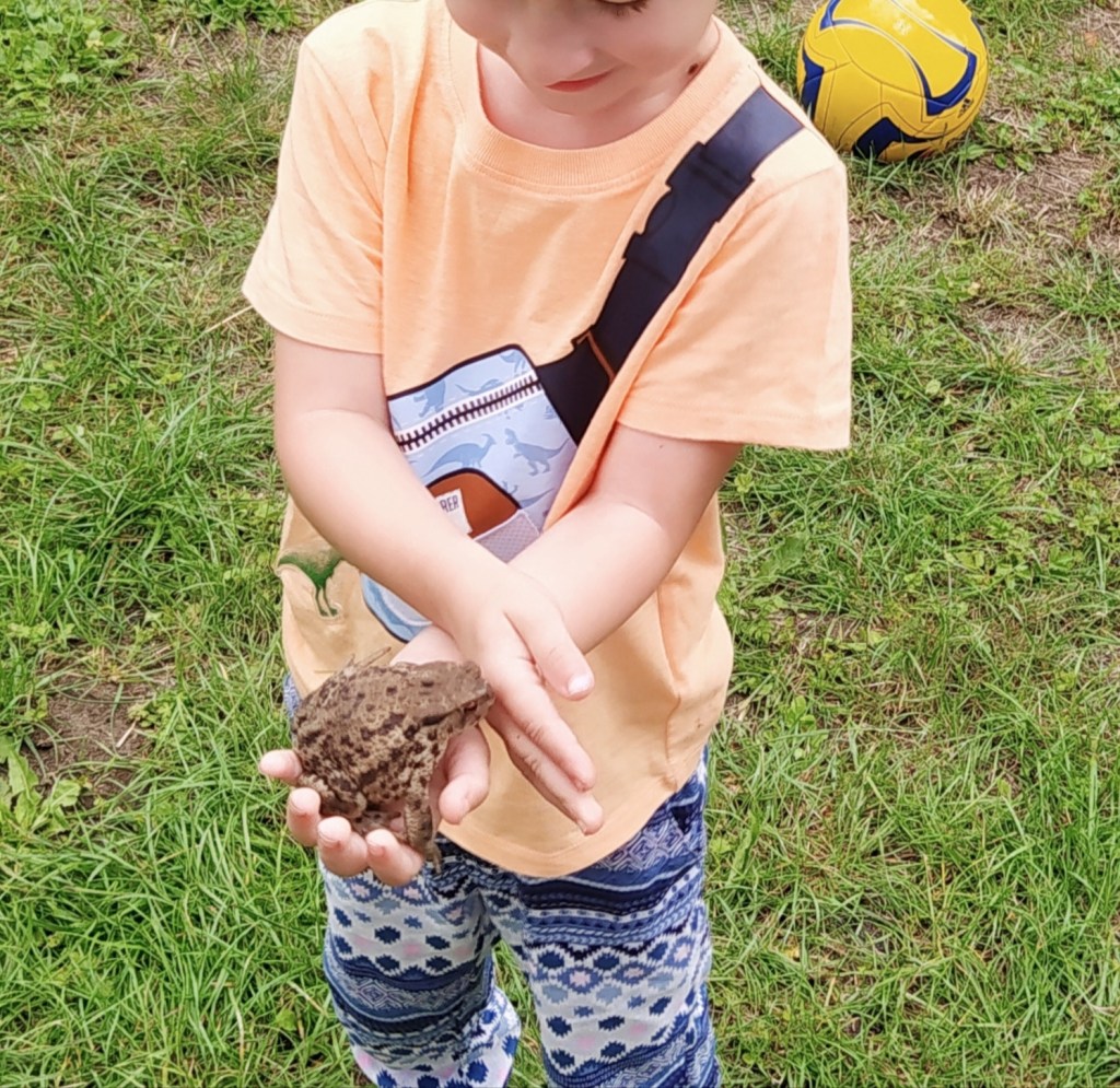 Die Tochter ist mir in solchen Momenten viel näher, sie ist im Umgang mit Meine Kröte sehr viel zögerlicher. Wenn eine Fliege ihren Weg kreuzt, ruft sie nach Hilfe. Kommt eine Spinne, wird ihre Stimme unnatürlich hoch. Ich frage mich, ob irgendwann meine Mutterliebe so groß sein wird, dass ich die Spinne selbst weg mache. Bislang muss noch der Vater ran. Sein Glück, so muss er wohl doch noch nicht ausziehen.