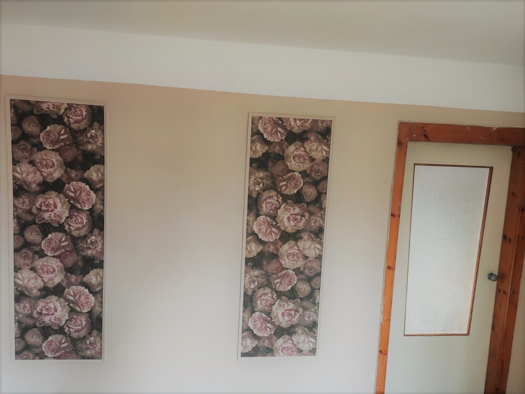 Ohrenbetäubende Stille folgten ihrer Aussage. Wir standen alle vor den einzelnen Rahmen und stierten auf die Wand. Was soll ich euch sagen? Nun sahen wir es alle. Wie hatte uns das nicht auffallen können? Die eine Bahn stand tatsächlich auf dem Kopf und das tut sie bis zum heutigen Tag und bis in alle Ewigkeit – beziehungsweise der nächsten Renovierung, denn ich wollte den Teufel tun, auch nur noch einen Finger zu krümmen. Wenn ihr also mal im Ferienhaus seid und seht, dass eine Tapetenbahn irgendwie anders ist, ja, nahezu verkehrt herum: das soll so! Das ist charmant und ich finde es, wenn auch nicht gerade großartig, dann wenigstens okay.