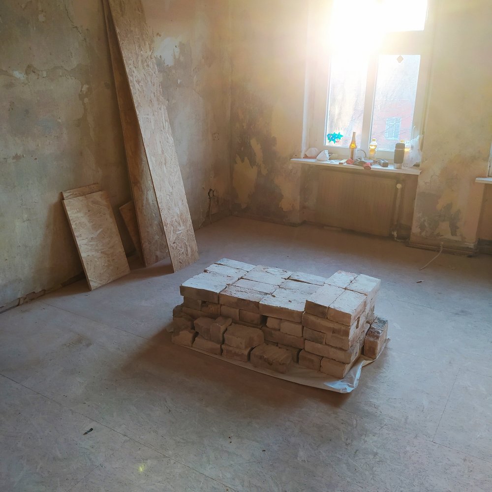 Wo waren wir? Ach, bei den Botschaften Hiobs. Wir arbeiteten uns von Zimmer zu Zimmer vor, zählten unsere Wünsche auf und nahmen seine düsteren Ahnungen entgegen. Der Kamin müsste neu gemauert werden. Überhaupt alle Schornsteine müssten bearbeitet werden. Von außen sah man Risse in der Wand. Die fanden wir offen gesagt, selbst besorgniserregend, aber von jemand anderem höre ich es dennoch nicht gern. Vermutlich wären die Fensterstürze komplett hin. Nur gehalten durch die Fensterrahmen. Der Dachboden? Müsste dringend gedämmt werden. Natürlich mit vorheriger Entfernung von so ungefähr allem, was sich darin befände. Nachdem alle Fenster vermessen worden waren, ging es draußen weiter. Sogar mit dem Nachbarhaus. Dies sähe im Prinzip so aus, als stürze es morgen zusammen. Auf unsere Wohnung übrigens. Man könne versuchen, da was zu machen. Aber eigentlich nicht besonders aussichtsreich. Aber was wisse er schon, er sei nur Dachdecker.