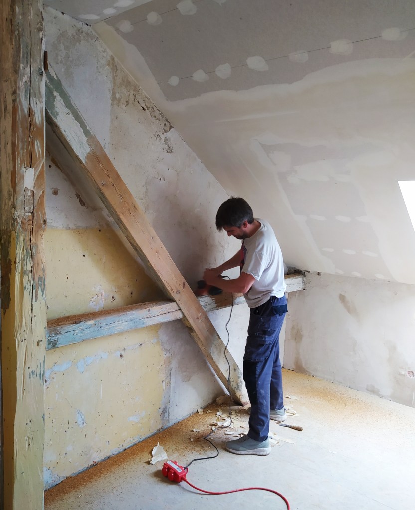 Alles, was nicht mehr in Ordnung war, wurde abgerissen: die Elektrik, sanitäre Anlagen, Vertäfelungen, Tapeten, alte Fenster. Danach war die Wohnung eine leere Hülle, die es wieder zu befüllen galt. Leider war ich zu diesem Zeitpunkt schon fix und fertig. Wir hatten da seit über vier Monaten nicht einen einzigen freien Tag gehabt. An den Wochentagen schufteten wir geistig im Büro (Meinen Job empfinde ich als durchaus fordernd. Ich arbeite als Recruiterin im sozialen Bereich und versuche täglich, Erzieher:innen für Berliner Kitas an Land zu ziehen, um die unerträgliche Personallücke zu schließen. Wenn ihr also Erzieher:in seid und einen Job braucht, wisst ihr, wo ihr mich findet…). Am Wochenende nahmen wir Bohrhammer und Brecheisen in die Hand und waren an den Abenden körperlich derartig erschlagen, dass wir nur noch in die Luft starren konnten. Erst als unser Sohn eines Tages seiner Oma traurig erzählte, dass seine Eltern nie Zeit für ihn hatten, zogen wir die Reißleine und legten die ein oder andere Pause ein. Das rächte sich natürlich umgehend, da wir so unsere Zeitpläne nicht halten konnten. Schließlich stellten wir in Gedanken die Baustelle zusammen, in der wir notfalls auch wohnen konnten. Wir konzentrierten uns also auf Decken, Böden und Wände, ließen aber beispielsweise die Türen außer Acht. Dabei haben wir traumhaft schöne Altbautüren hier! Wundervolle kunstfertig gestaltete Zargen mit herrlichen Kassettentüren. Aber die brauchten wir wohl nicht in den ersten Wochen in der Wohnung. Sie wanderten in die Abstellkammer (NATÜRLICH stehen sie da noch immer).